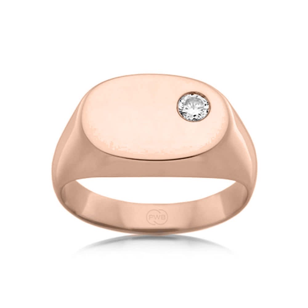 Showcase your unique attributes with this exquisite signet ring, designed in 18K yellow gold. Encrusted with a round brilliant cut diamond, the oval-shaped signet exudes a unique masculine look in this classic men's ring. This ring is available in 18K white, yellow, rose gold, platinum 600, and platinum 950. The jewellery is beautifully handmade to the highest standards. Shop directly from us and save over 40% when compared to high-street retail prices. We also offer unmatched 100 day returns. Buy online or book an appointment to visit our jewellery boutiques in Sydney and Melbourne.